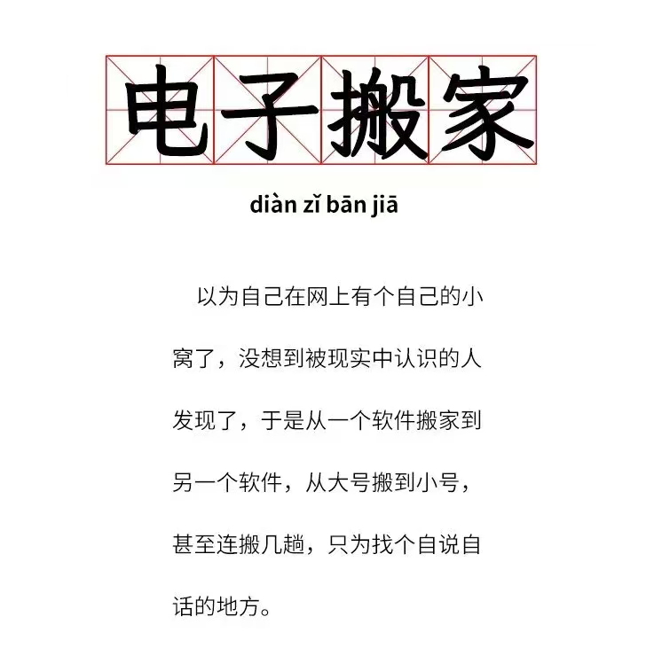搬过家的朋友们都知道,地段很重要。不仅要考虑工作和生活的便利,还要看看邻居和周围的环境。当精心养成的社交媒体小号被同事发现,隐藏的“电子住宅”被熟人造访,有的人会急忙备份内容、更换社交平台,默默来一次“电子搬家”。“电子搬家”所为何事?学“孟母三迁”、搬迁腾挪,哪里才是年轻人的心灵故乡?