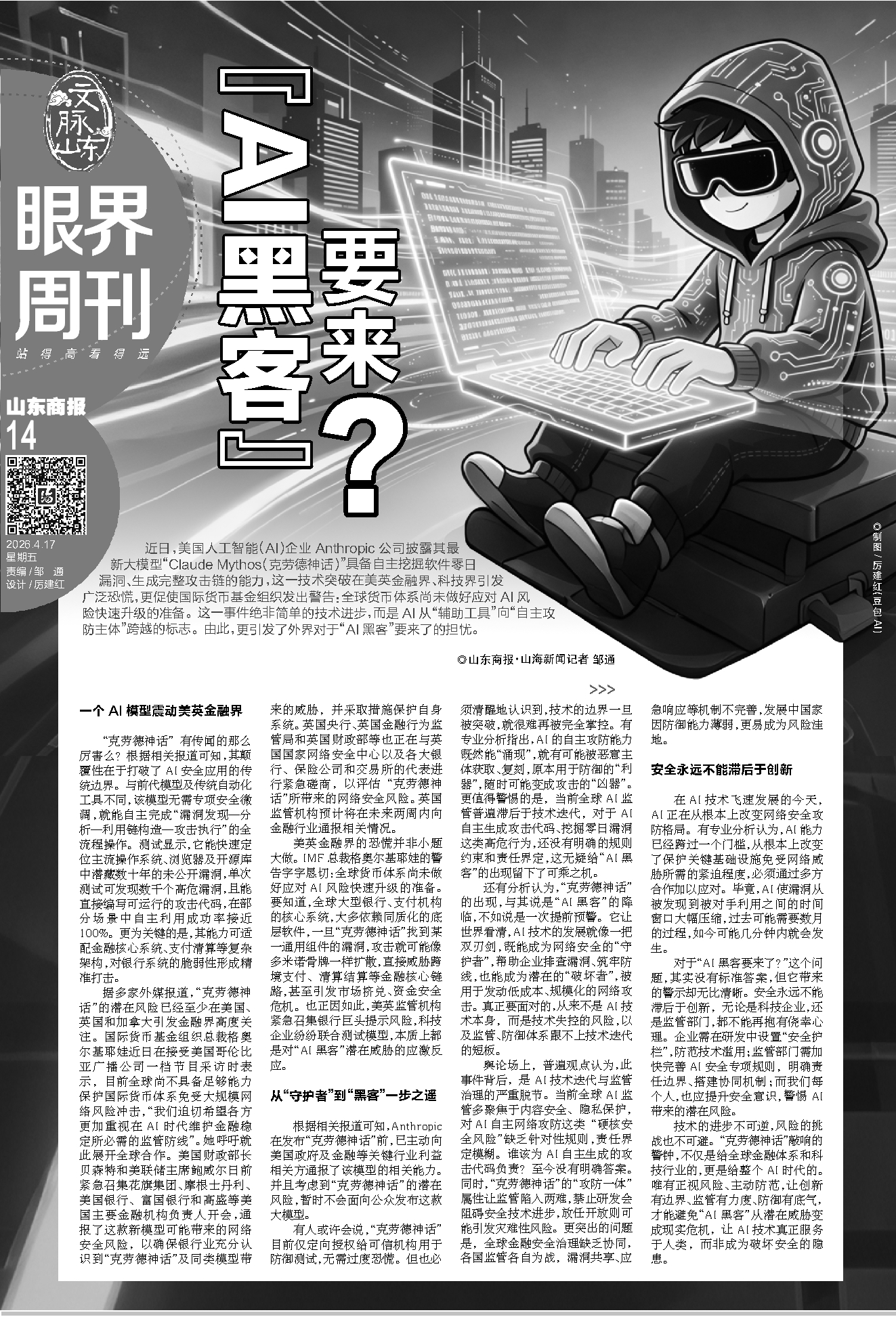 技术的进步不可逆,风险的挑战也不可避。“克劳德神话”敲响的警钟,不仅是给全球金融体系和科技行业的,更是给整个AI时代的。唯有正视风险、主动防范,让创新有边界、监管有力度、防御有底气,才能避免“AI黑客”从潜在威胁变成现实危机,让AI技术真正服务于人类,而非成为破坏安全的隐患。